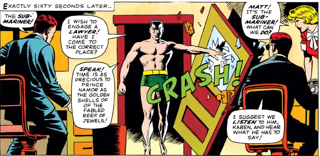 The third member of the law office is secretary Karen Page. Coming across as relatively likable and normal, her backstory is certainly the least explored of the main cast. She is the typical comic book stereotype of a 1960’s woman, written by a man. At times immature and boy crazy, Karen can come across as juvenile frequently, despite her not being notably young or anything of the sort. In the contemporary X-Men series, Lee sometimes gets away with awkwardly misogynistic depictions of the singular woman character, Jean Grey, by specifying she is younger and less experienced than her teammates. Besides potentially an education in law gap, there is no real scapegoat in place for Karen.