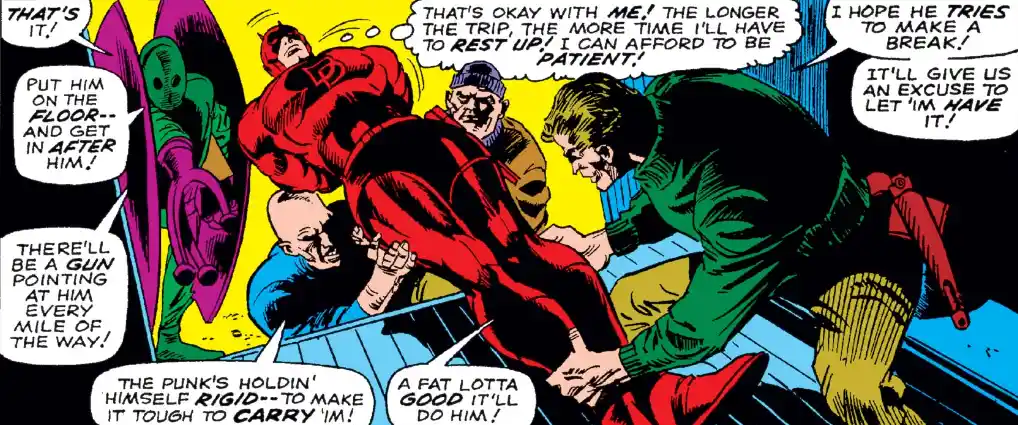 Halfway through his introductory run of Daredevil, Stan Lee faced two looming threats, artistic consistency and painful mediocrity. For the entire preceding run of the series, Lee had been unable to nail down long term artists. This resulted in a cycle of the book coming to a screeching halt just as it is picking up speed. The chemistry and collaboration between writer and artist never seemed to truly click, with the slight exception of John Romita Sr. However even Romita’s run would be quite short at the end of the day compared to Lee himself. Despite the rotating bullpen of artists, the book always looked good and the art was never distracting or particularly lacking. Being passable actually highlighted the main issue facing The Man Without Fear, his identity.