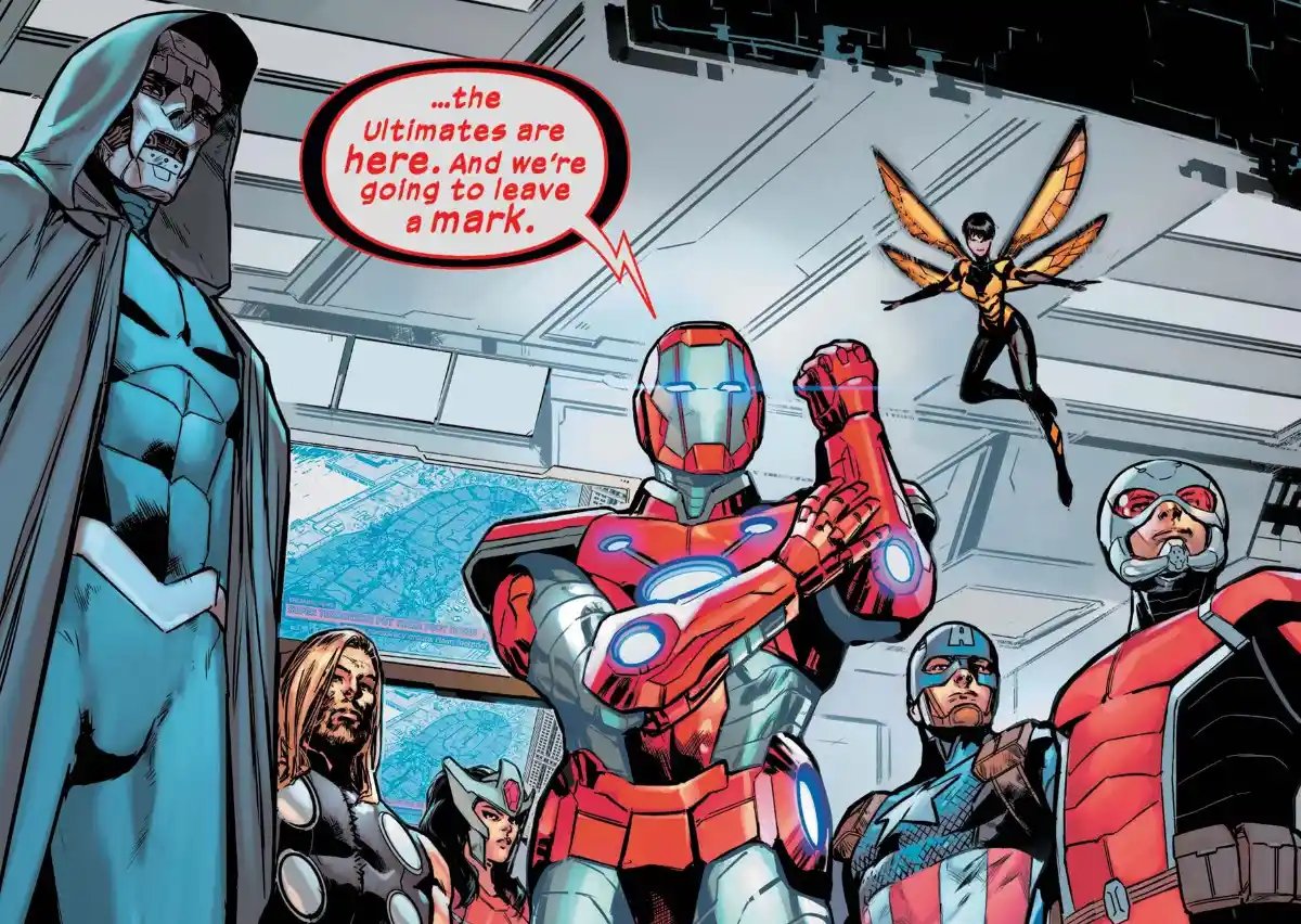 Deniz Camp was far from subtle in the comparisons he was drawing between the struggles of the Ultimate Universe’s premier superhero team and real-world forces of oppression and resistance within the initial half-dozen issues of Ultimates. In the subsequent six issues, there is no change in the confidence behind the series, but its focus becomes a lot tighter and more transparent.